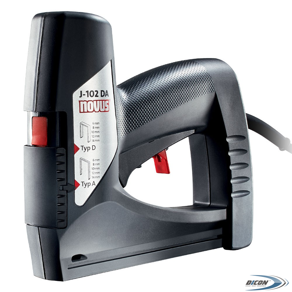 - Рукоятка электрического степлера Novus J102DA 031-0354 оснащена блокирующим удар механизмом;