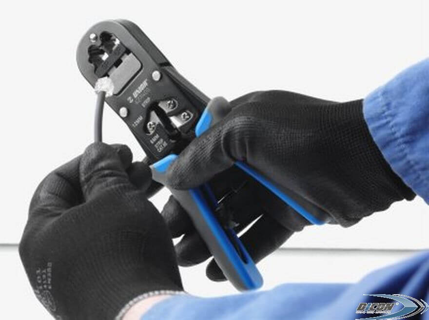 - Для обжатия 6- и 8-жильных кабелей типа RJ 11/12 (шириной 9,65 мм) и RJ 45 (шириной 11,68 мм);