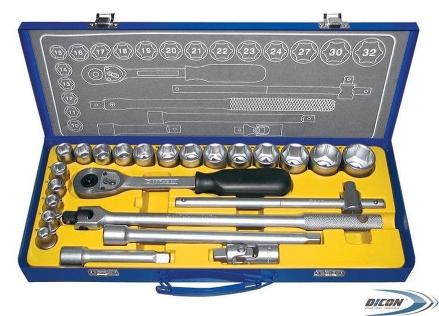- Торцевые головки 1/2": 10, 11, 12, 13, 14, 15, 16, 17, 18, 19, 20, 21, 22, 23, 24, 27, 30,32 мм;