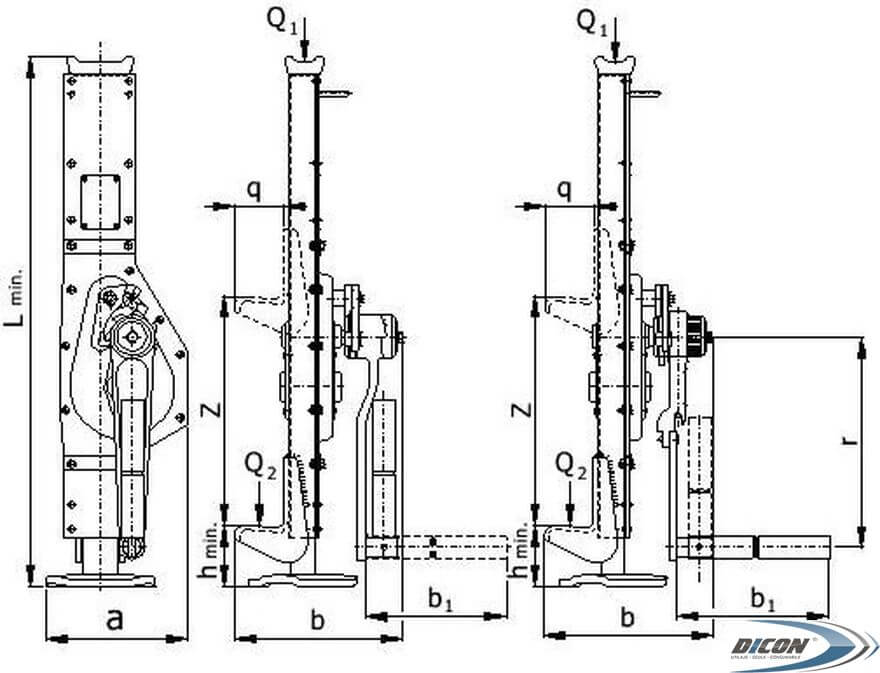 - пятка домкрата оснащена вспомогательным отверстием – с целью облегчения использования домкрата для распора в горизонтальном положении на высоте над головной частью.