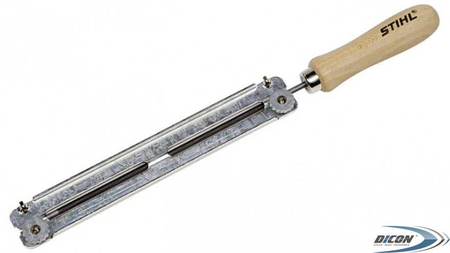 - Un suport de filet rotund de 5,2 mm, 3/8 ", pentru discurile de tăiere Stihl, permite o ascuțire rapidă, simplă și precisă a lanțului de ferăstrău la unghiul drept și la adâncimea potrivită;