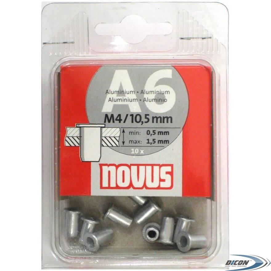 Заклепки с внутренней резьбой алюминиевые Novus A6 10,5мм 10шт
